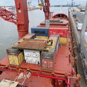 - Snímek z lodi Industrial Dolphin, která převážela družici Sentinel-6B z Brém do Galvestonu (Foto: ESA)
