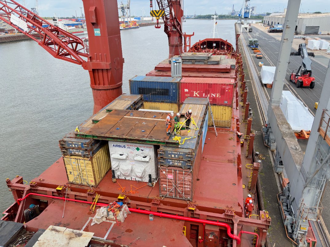 - Snímek z lodi Industrial Dolphin, která převážela družici Sentinel-6B z Brém do Galvestonu (Foto: ESA)
