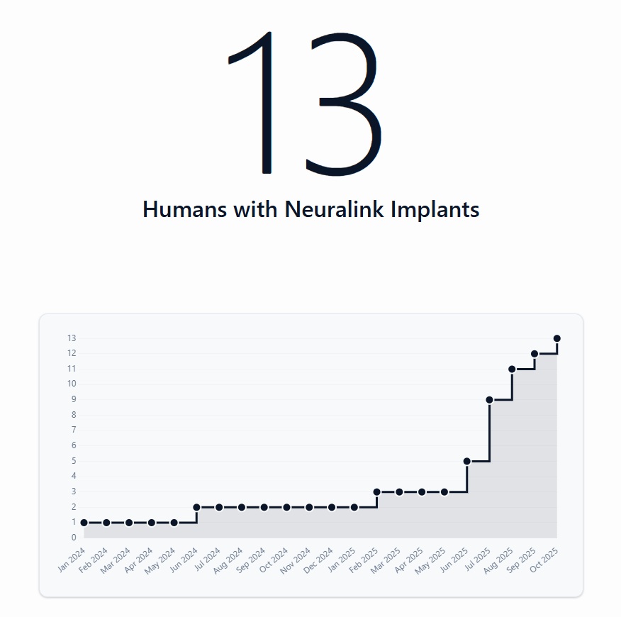 Na adrese howmanyhumanshaveneuralink.com (česky „koliklidímáneuralink.com“) můžete najít počítadlo uživatelů Neuralinku. Počítá oficiálně oznámené pacienty, čili nevnáší nic moc nového, ale je určitě zajímavé, že si někdo s touto doménou dal práci a financuje její provoz. Aktuálně podává následující informace: